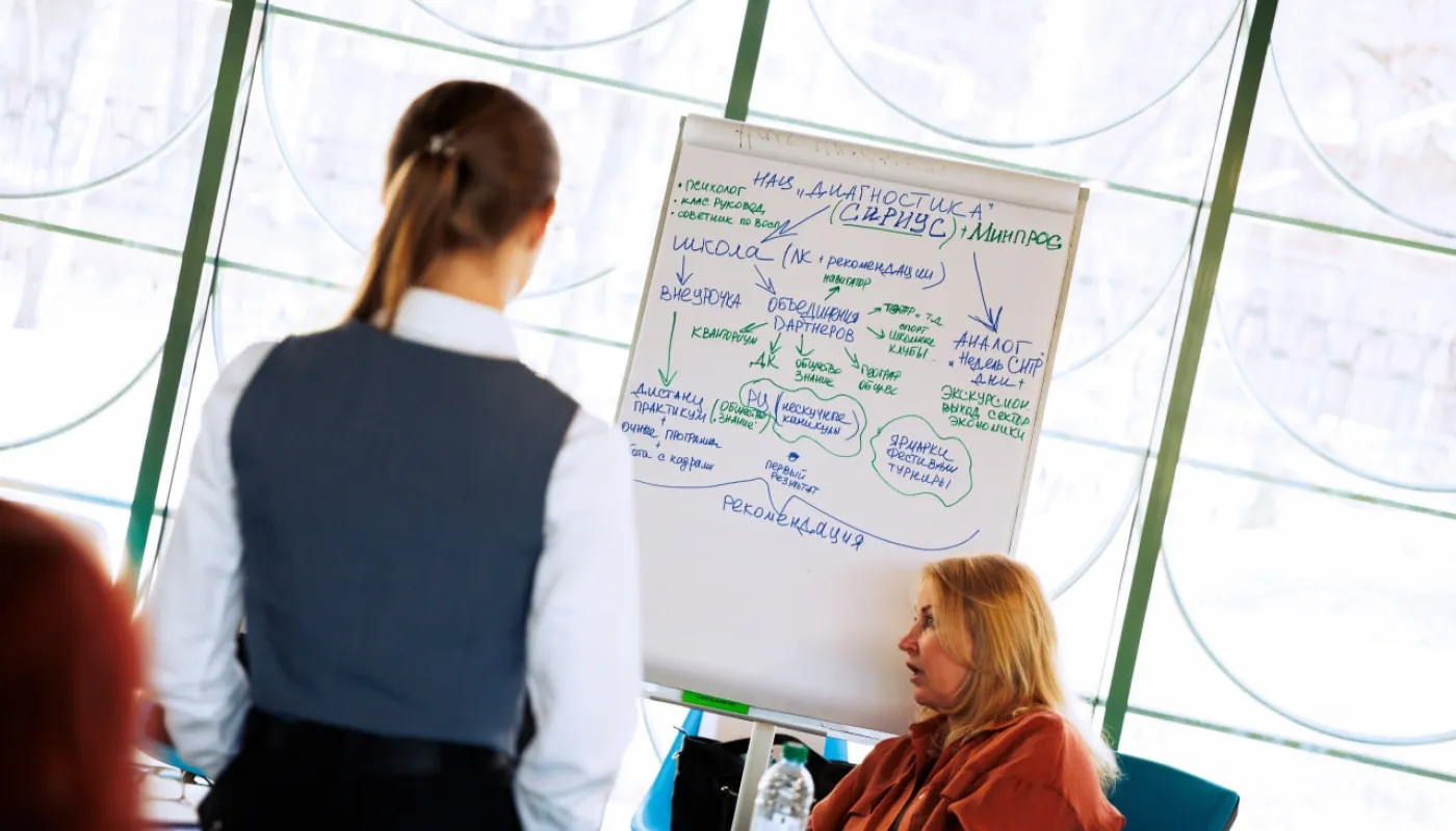 20 марта к диалогу подключились учителя и директора школ — ассоциированных партнёров «Сириуса». Педагоги естественно-научного и IT-профилей работали в группах, разбирали кейсы и обменивались методиками.