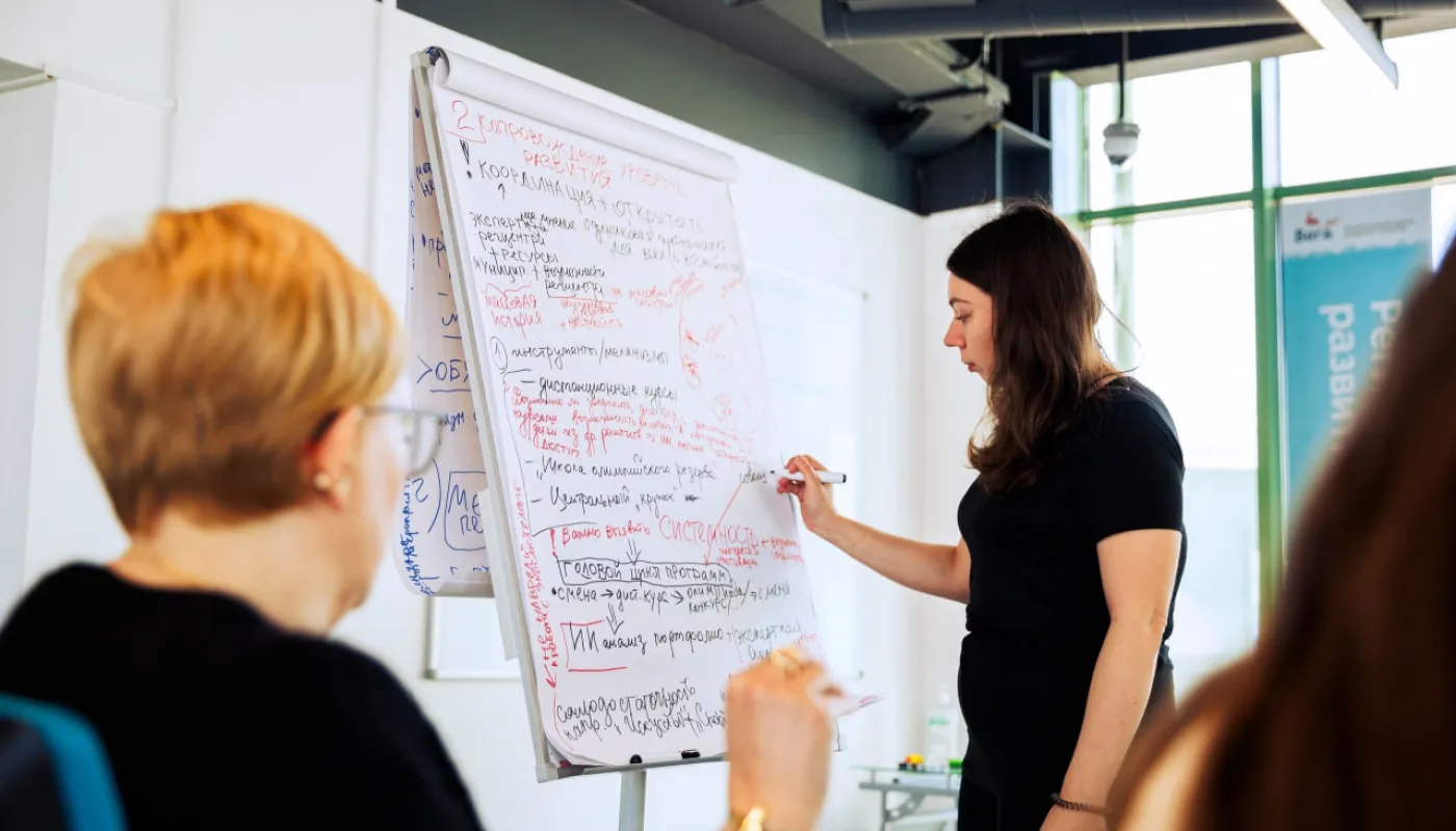 В первый день участники обсуждали подходы к обновлению правил работы с одарёнными детьми, делились опытом и искали точки роста. Ключевые спикеры — Игорь Барышев (ресурсно-методический центр «Сириуса»), Ирина Зиновьева (директор «Веги»), руководители региональных центров из разных субъектов.
