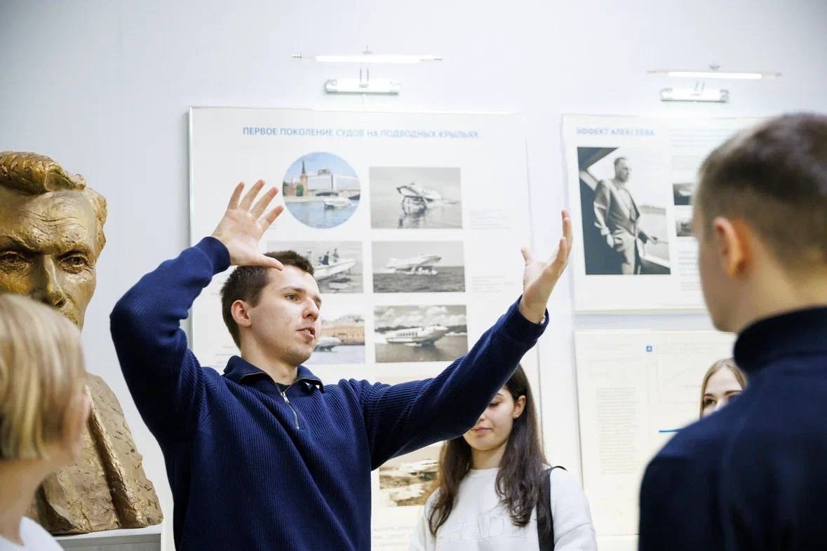 Герои техники: от подвигов прошлого к инновациям будущего Историко-патриотический центр НГТУ им. Р.Е. Алексеева превратился в машину времени. Школьники узнали о великих инженерах, чьи открытия прославили страну, увидели уникальные экспонаты, связанные с военной историей и техническими достижениями, и поняли, как прошлое вдохновляет создавать технологии завтрашнего дня.